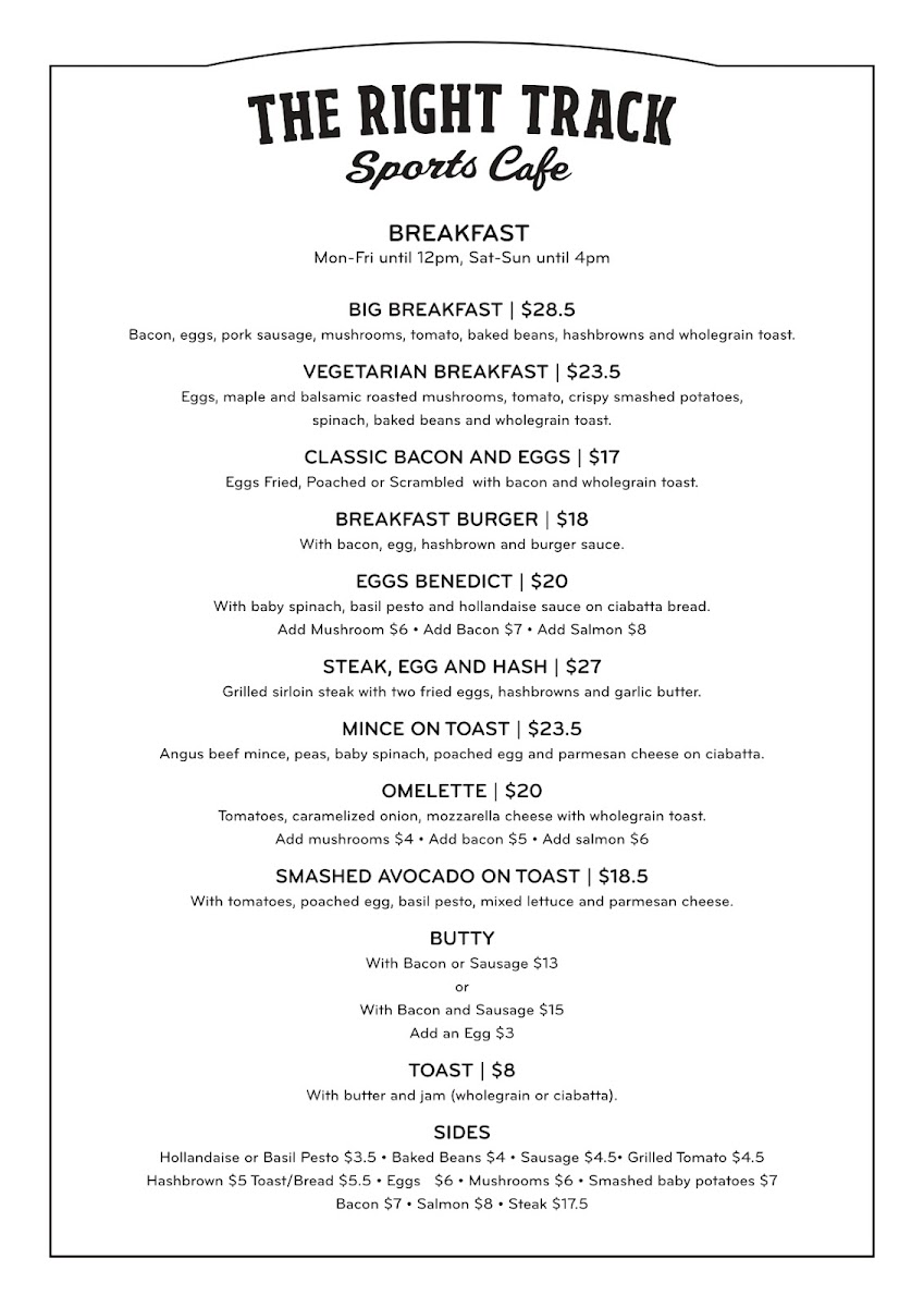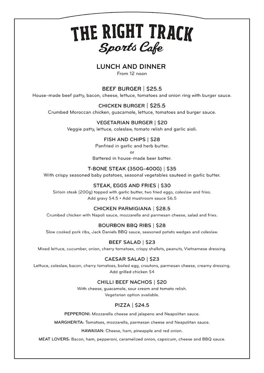 The Right Track Sports Cafe Menu